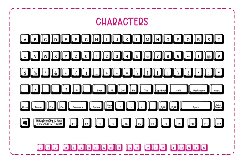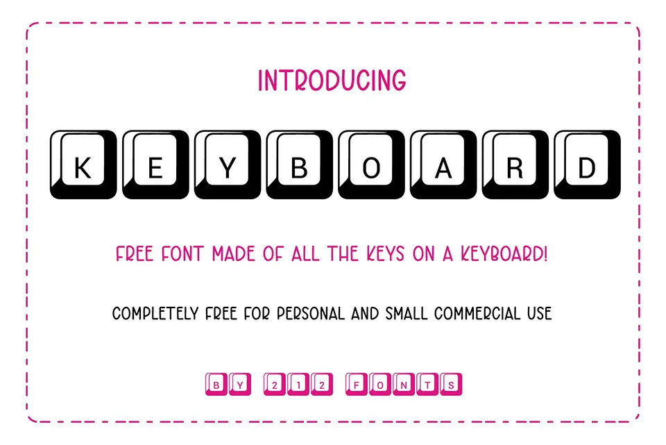 212 Keyboard Font is a creative typeface designed to replicate the look of computer keyboard keys. Developed by 212 Fonts and designed by Elizabeth McLain, this font features bold, square-shaped characters that mimic the tactile feel of physical keys. Ideal for tech-inspired designs, educational materials, or playful projects, the font adds a unique, modern touch to any layout. It supports multiple languages and is free for personal and small commercial use. Whether you’re a teacher, blogger, or designer, the 212 Keyboard Font offers a fun and functional way to make your text stand out with a technological flair.