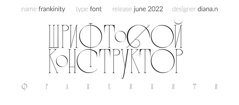 Frankinity Font is a beautifully crafted serif typeface designed by Diana N. Launched in June 2022, this font combines modern elegance with classic charm, making it an ideal choice for various design projects. Its unique letterforms and stylish curves lend themselves well to branding, editorial layouts, and expressive packaging. Frankinity is versatile, allowing it to adapt seamlessly to both digital and print mediums, enhancing the visual appeal of any project.