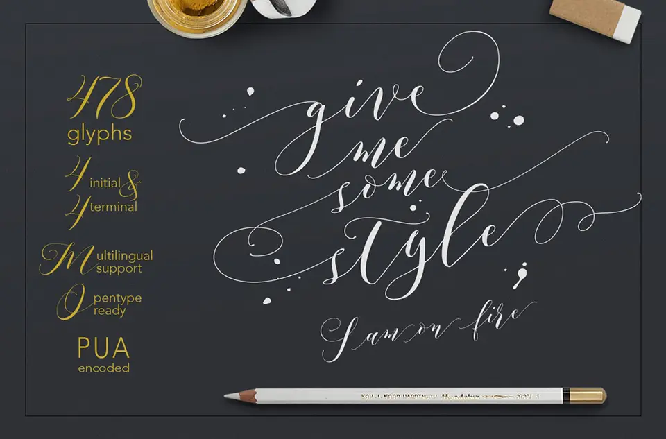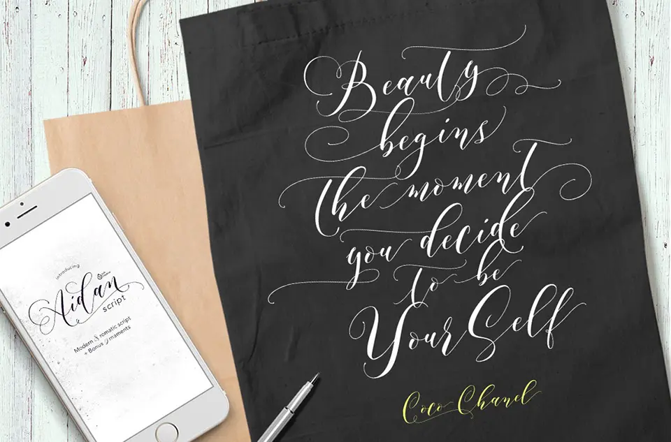 Aidan is a modern copperplate calligraphy with a romantic and dramatic movement. It suitable for wedding invitation, greeting cards, watercolor based design, or anything that need natural feeling to put on to.