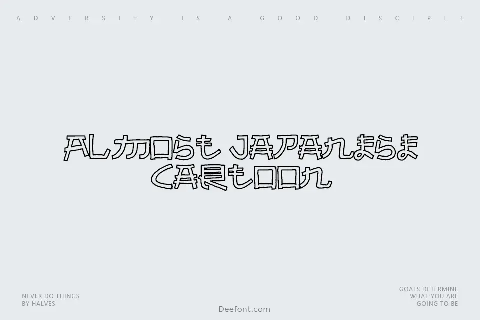 Almost Japanese Cartoon Font is a playful typeface blending retro anime aesthetics with modern design sensibilities. Characterized by bold, uneven strokes and exaggerated curves, it mimics the hand-drawn dynamism of vintage Japanese animation titles. The font features quirky letterforms with slight imperfections, giving it an approachable, nostalgic charm reminiscent of 1980s–90s cartoon logos. Its angled terminals and irregular baseline create a sense of movement, while the rounded edges maintain readability. Ideal for projects needing vibrant, youthful energy, this font works exceptionally well for comic book covers, arcade-style graphics, or any design seeking to evoke whimsical storytelling and pop culture flair.