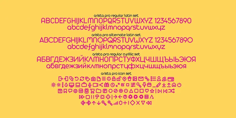 Arista Pro Font Family is a versatile geometric sans serif typeface designed by Francesco Canovaro and published by Zetafonts. Originally released in 2007 as Arista Z and later reissued as Arista 2.0 in 2010, the Pro version represents the definitive evolution of this font family. The typeface features a soft, geometric approach and comes in multiple weights with two alternate versions. It includes support for Greek and Cyrillic alphabets, along with an extended range of Latin characters. A notable companion, Arista Pro Icon, offers variable-width monoline icons that perfectly match the typeface’s line width. The font’s clean, modern aesthetic makes it suitable for both display and paragraph text applications.