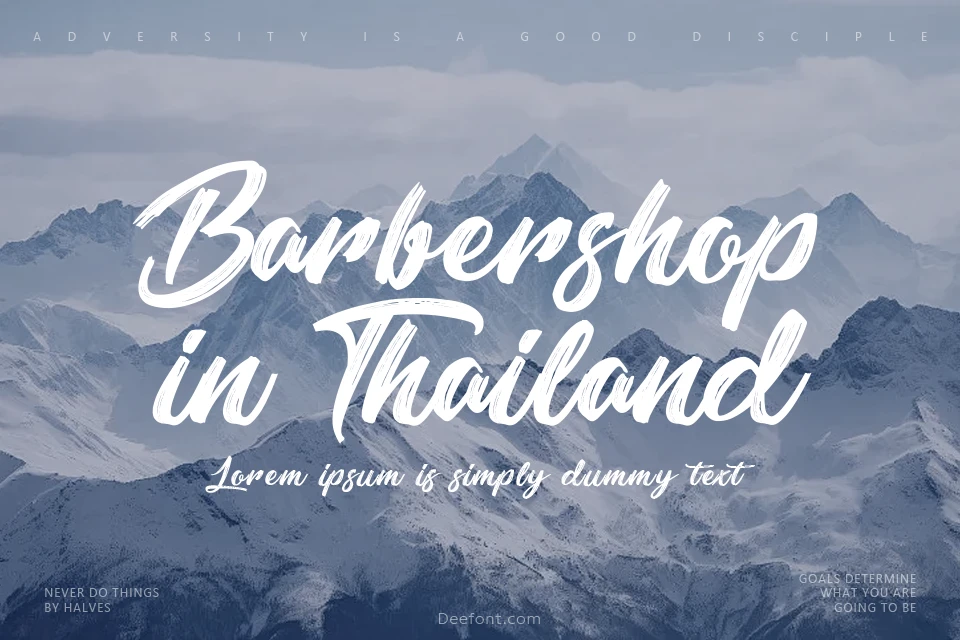 Barbershop in Thailand Font is a stylish script typeface designed to evoke elegance and creativity. Similar to Qanelas Soft, this monospaced typeface features distinctive upstrokes and downstrokes that create a catchy and modern aesthetic. The font showcases masterful design in each character, making it particularly suitable for print headlines, brand designs, and digital layouts. Its unique characteristics and versatile nature make it an excellent choice for projects requiring a contemporary blend of beauty and readability. Whether used in logos, print materials, or digital designs, Barbershop in Thailand font delivers a sophisticated and impactful visual presence.