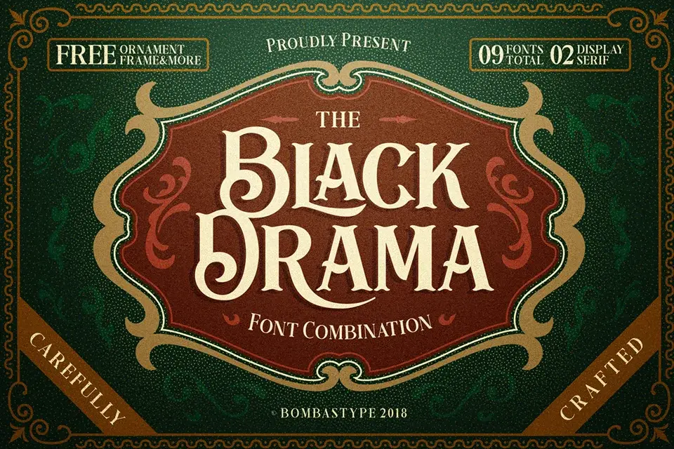 Black Drama is a decorative serif font designed by BombasType, characterized by its flourish shapes and versatility. It offers a range of alternate characters, ligatures, and discretionary ligatures, making it suitable for various design projects.