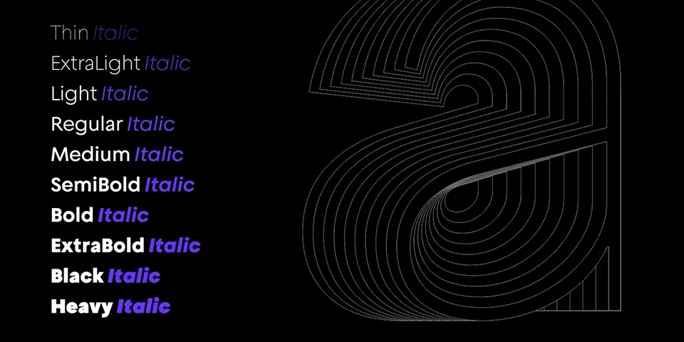 Geliat Font Family is a versatile geometric sans serif typeface family created by Wahyu & Sani Co. It comes in two distinct versions, featuring different default glyphs – one with common letterforms suitable for text and another with geometric letterforms for display use. The family includes 44 fonts, with 10 weights ranging from Thin to Heavy, each with matching italics and variable fonts. Its unique italic styles were designed using a semi-rotalic method, combining 5-degree angles for round parts and 10-degree angles for vertical strokes. Geliat supports over 500 glyphs covering Western & Eastern European languages and includes extensive OpenType features like ligatures, fractions, and stylistic alternates.