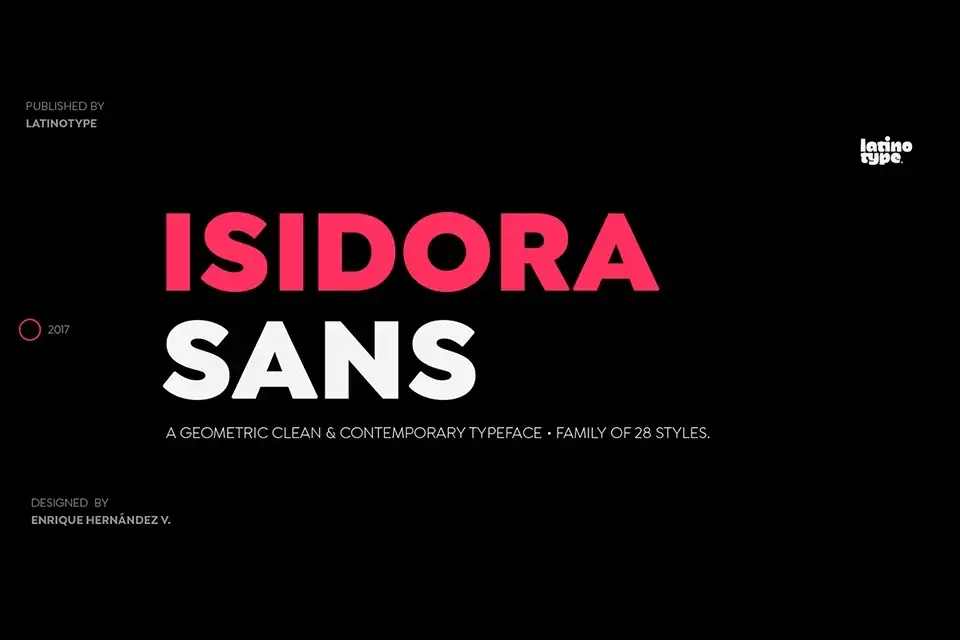 Isidora Sans Font Family is a modern geometric font family designed by Latinotype, a foundry based in Santiago, Chile. It features a clean, contemporary look while maintaining the essence of classic early 20th century sans serif fonts. The family consists of two subfamilies with a total of 28 fonts, ranging from Thin to Black weights with matching italics. With 416 characters supporting 207 languages, Isidora Sans is ideal for publishing, titling, branding, and corporate design.