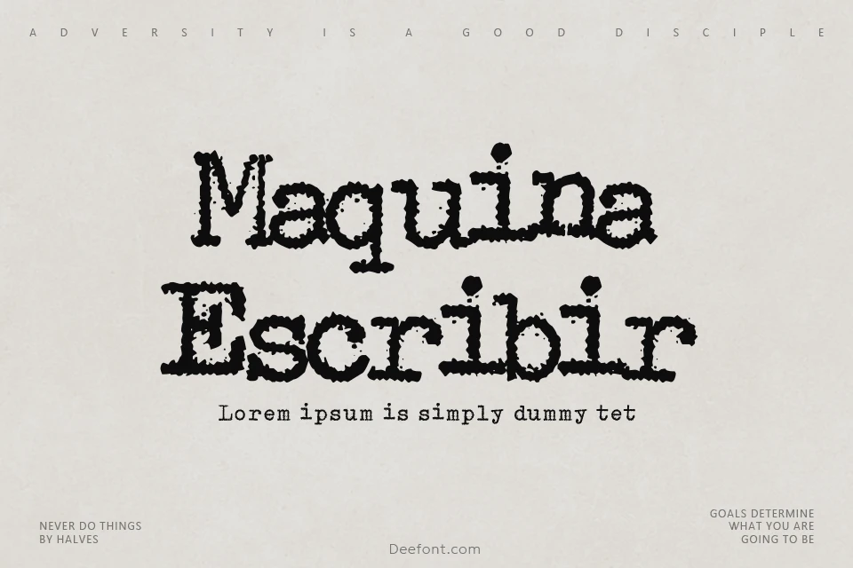 Maquina de Escribir Font is a distinctive typeface that authentically captures the essence of vintage typewriter text. Created by Woodcutter, this monospaced font features carefully crafted imperfections and ink defects that mirror the character of traditional typewritten documents. The font includes complete accent support and maintains a textured, distressed appearance that adds nostalgic charm to any design project. With its ability to support 37 different languages, Maquina de Escribir serves as a versatile choice for creating retro-inspired typography. Its unique characteristics make it perfect for projects that aim to evoke a classic, vintage aesthetic or typewriter-style authenticity.