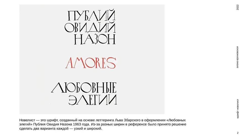 Novelist Font was designed by Alena Krachkovskaya, a talented typeface designer.