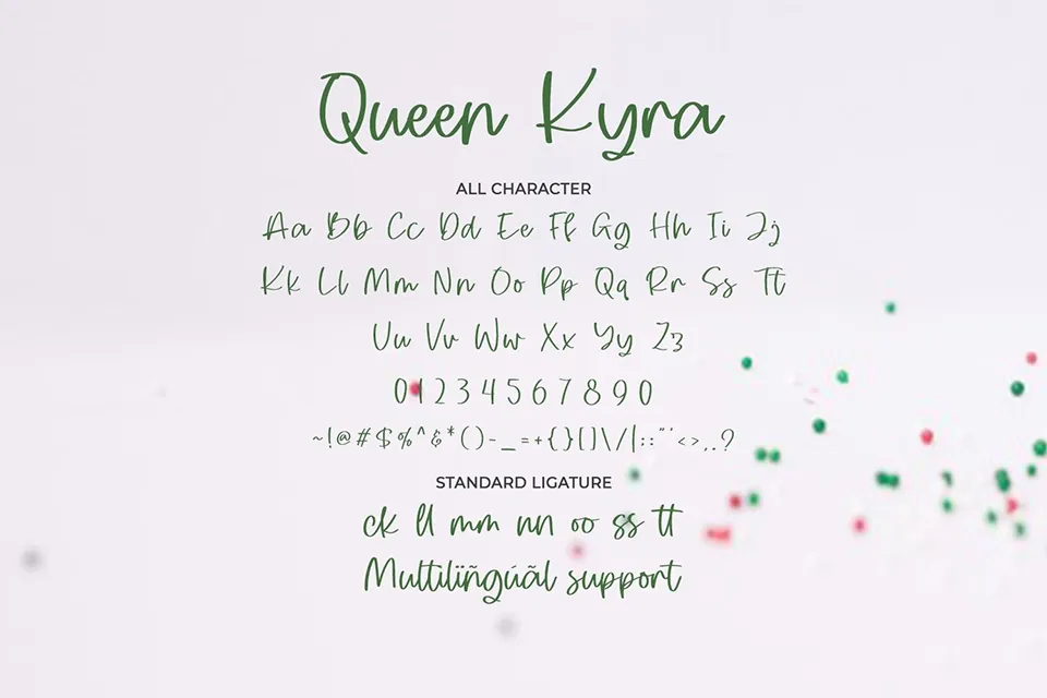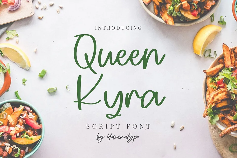 Queen Kyra Font is a beautiful handwritten typeface, made for any professional project. It is the best for logos, branding and quotes. Every letter has a unique and beautiful touch.