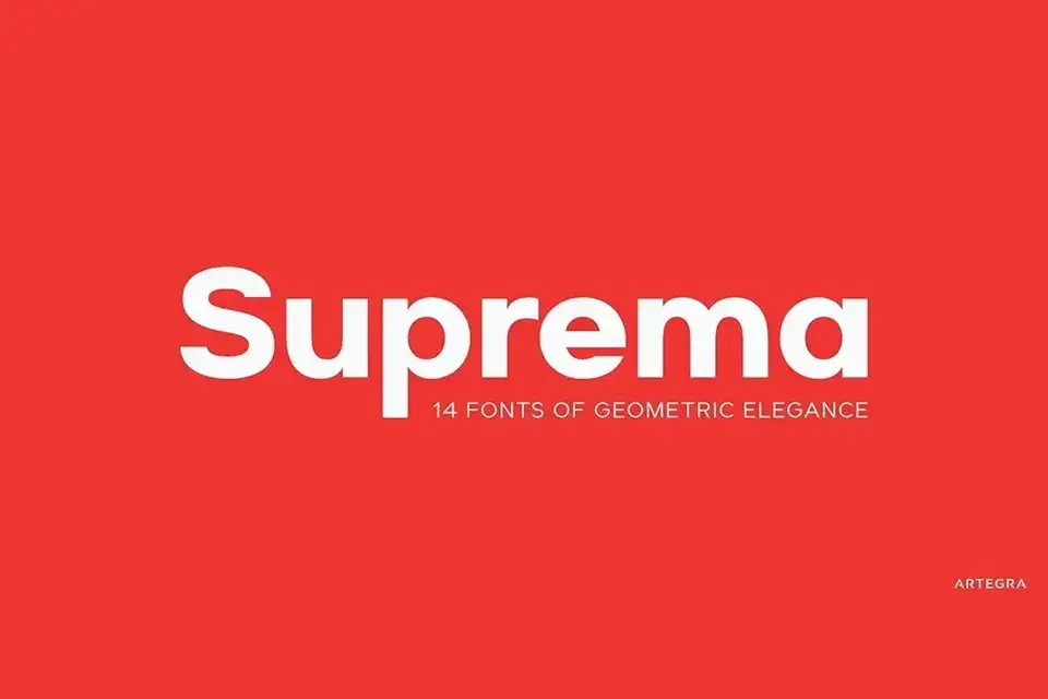 Suprema Font Family is a modern sans serif typeface designed for geometric perfection. Created by Artegra, this versatile font family comprises 14 fonts, including 7 weights with matching true italics. Suprema boasts clean lines, precise angles, and a sleek aesthetic that balances form and function. It offers extensive OpenType features such as tabular lining, proportional oldstyle, ligatures, superscript, subscript, and fractions. The font supports multiple languages, making it ideal for international projects.