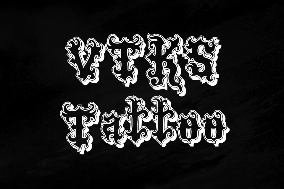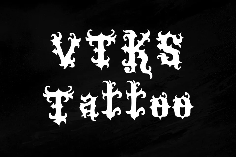 Download the VTKS Tattoo Font, explore its character map, and craft text-based images or logos using the VTKS Tattoo Font online.
