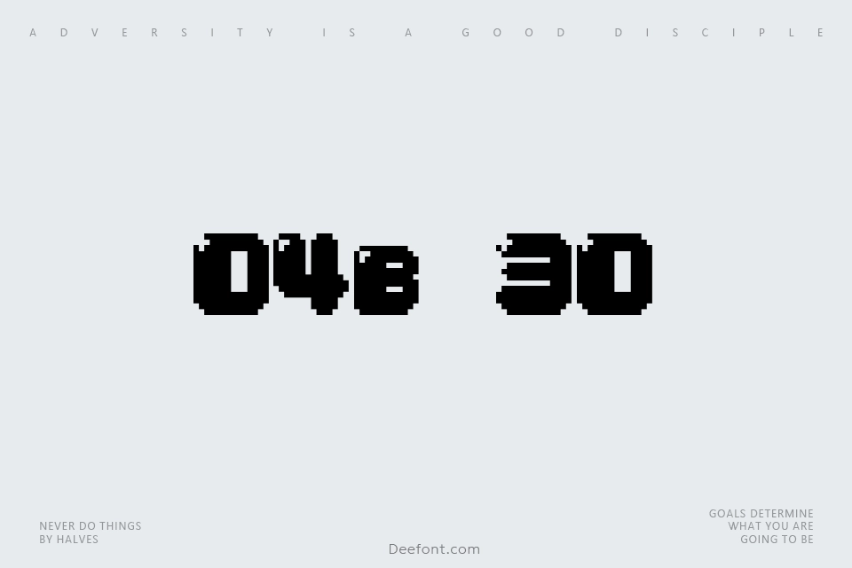 04b_30 is a distinctive pixel bitmap font created in 2000 that delivers authentic retro digital aesthetics. This minimalist typeface features a compact 16-pixel design, making it ideal for vintage-inspired projects, gaming interfaces, and digital displays. With its clean geometric letterforms and characteristic blocky appearance, 04b_30 brings nostalgic charm to any creative endeavor. The font has been downloaded over 1.7 million times, establishing itself as a beloved choice among designers seeking authentic pixel-based typography that evokes early computing and arcade gaming eras.