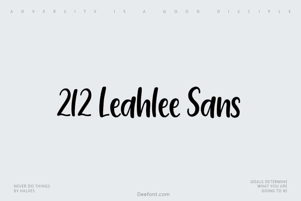 212 Leahlee Sans is a clean, handwritten sans serif font designed for personal creative projects. Featuring a pretty and girly aesthetic with 395 glyphs, this charming typeface offers smooth letterforms perfect for modern designs, logos, social media content, and decorative typography. The font combines contemporary minimalism with playful handwriting elements, making it versatile for various creative applications while maintaining readability and visual appeal.