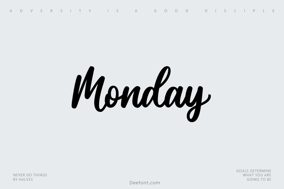 Monday Font is an elegant and flowing handwritten script typeface featuring smooth lines, beautiful glyphs, and a modern friendly appearance. Inspired by free-flowing handwriting with casual strokes, this versatile display font combines contemporary style with charming character, making it perfect for greeting cards, invitations, resumes, posters, and creative branding projects. The font’s exuberant vibe and varying baseline create a sophisticated yet approachable aesthetic suitable for both digital and printed works.