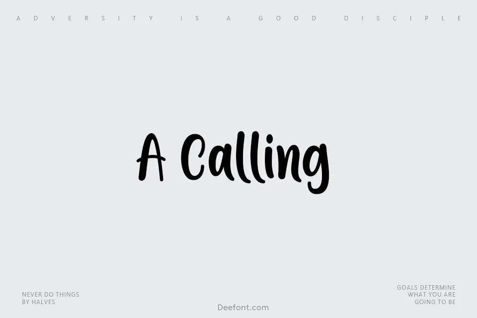 A Calling Font is a beautiful script typeface with striking, elegant letterforms and graceful flourishes. This playful handwritten style excels in wedding invitations, logo design, and social media graphics. With excellent readability, A Calling Font brings warmth and personality to decorative titles, greeting cards, and branding projects. Perfect for designers seeking hand-drawn aesthetics with sophisticated charm.