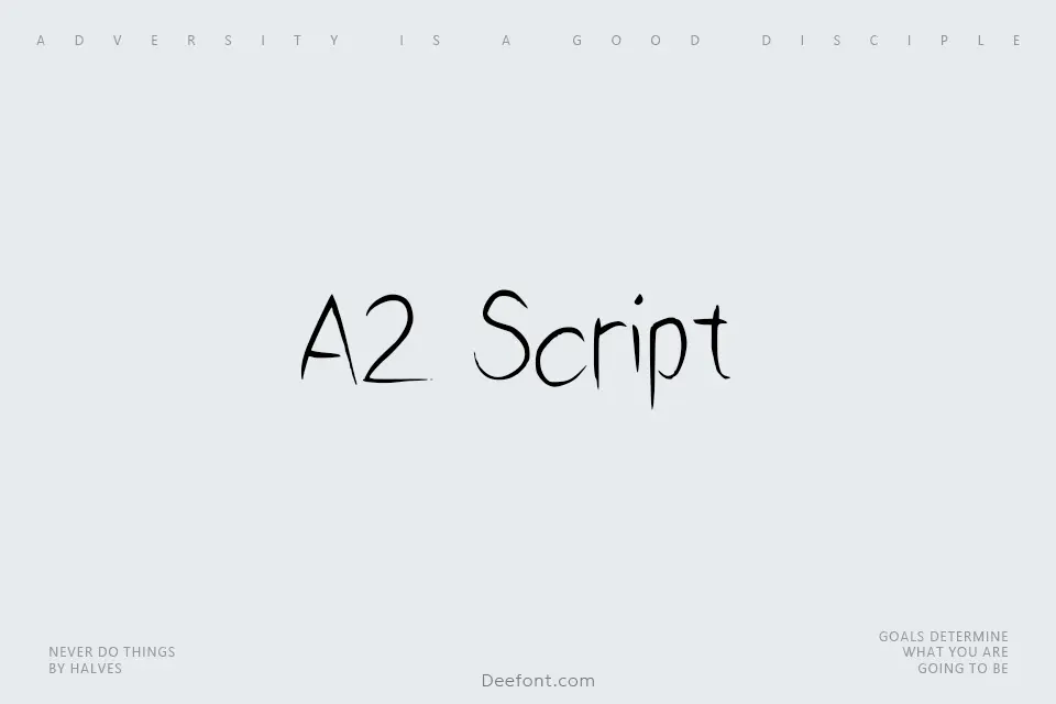 A2 Script is a whimsical handwritten script typeface featuring flowing, organic letterforms with a natural hand-drawn quality. This artistic font combines elegant strokes with playful character, making it ideal for creative headlines, poster designs, invitation cards, and decorative display work. The letters possess an authentic handwritten appearance that adds personality and charm to design projects, particularly excelling in artistic contexts, greeting cards, and contemporary creative applications where warmth and personal touch matter most.