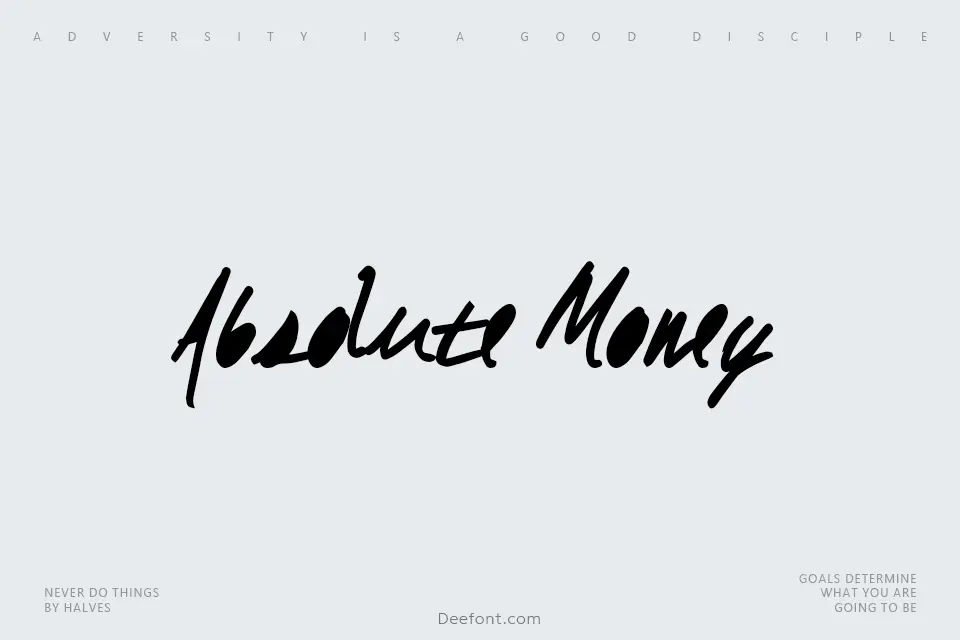 Absolute Money is a casual handwritten typeface with loose, expressive brush strokes capturing genuine penmanship. This versatile script font excels in posters, titles, greeting cards, and branding. With informal character and strong readability, it brings personal warmth and artistic appeal to designs needing human-touched typography for digital and print media.