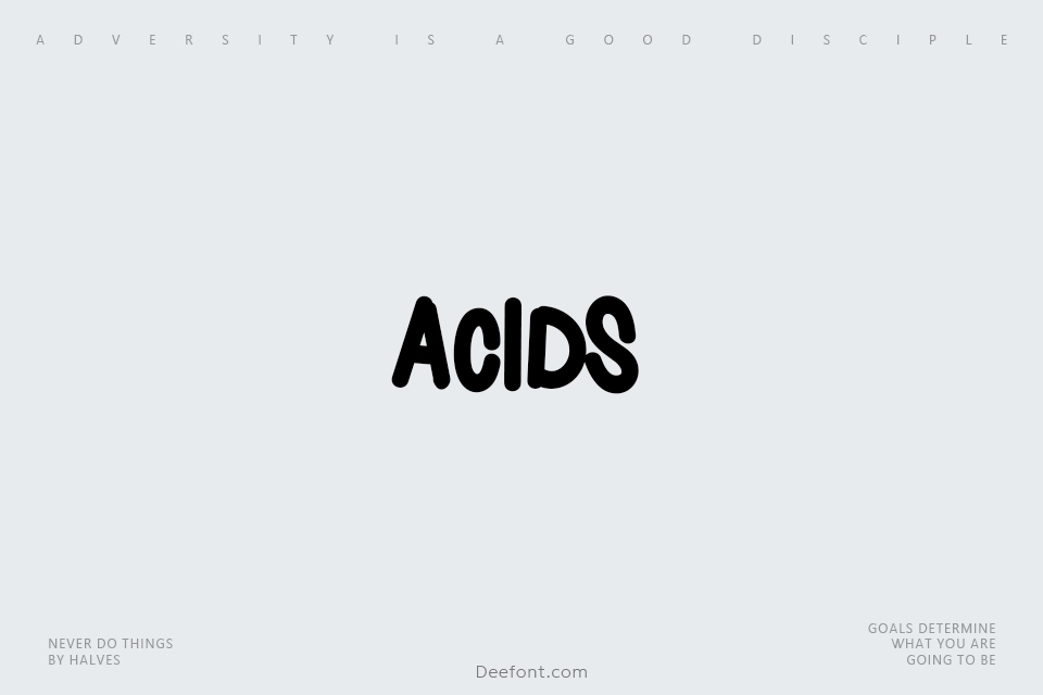 Acids is a handdrawn brush font featuring a playful calligraphy style that brings a fun, child-like charm to any design project. This distinctive typeface mimics the organic, flowing strokes of brush lettering, making it perfect for posters, comic books, cartoon designs, event materials, t-shirts, logos, badges, stickers, and summer-themed creative work. With its unique character and energetic aesthetic, Acids adds personality and warmth to greeting cards, branding projects, wedding materials, and various design applications requiring an informal yet artistic touch.