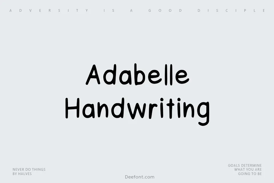 Adabelle Handwriting is a charming, free handwritten script font that captures the playful essence of natural, informal handwriting with characteristic quirky strokes and flowing letterforms. This versatile typeface features a casual, friendly aesthetic ideal for display purposes including posters, greeting cards, social media graphics, product packaging, and creative invitations. The font’s relaxed character makes it perfect for headlines, titles, and branding projects that require a personal, approachable touch, while its smooth, natural curves and organic letterforms evoke a sense of genuine human craftsmanship and warmth.