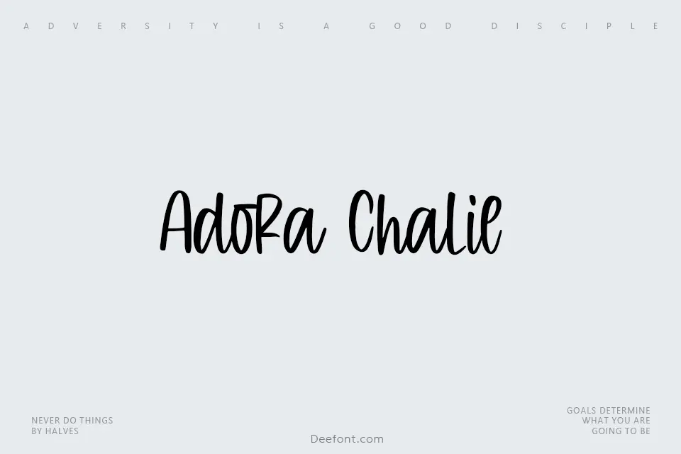 Adora Chalie is an exuberant handwritten script font characterized by irregular letterforms and a distinctly bouncy, playful quality. The typeface combines bold strokes with whimsical irregularities, making it exceptionally suited for creative headlines, eye-catching posters, logo designs, wedding invitations, and social media graphics. Its uninhibited personality brings an instant sense of fun and contemporary flair to any design, from packaging and branding to decorative lettering and artistic typography projects.
