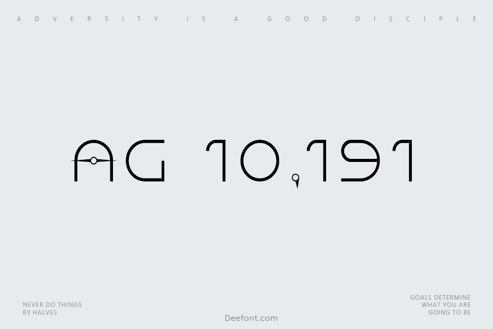 AG 10,191 is a futuristic display font designed by Purgruv D Mount-Heron, inspired by the film logo for Dune by Denis Villeneuve. With its light weight and expanded width, this sleek and modern typeface is perfect for sci-fi movies, video game titles, and futuristic advertising campaigns. The font’s unique geometric design makes it ideal for creating cutting-edge websites and eye-catching merchandise that demands attention and stands out from the crowd.