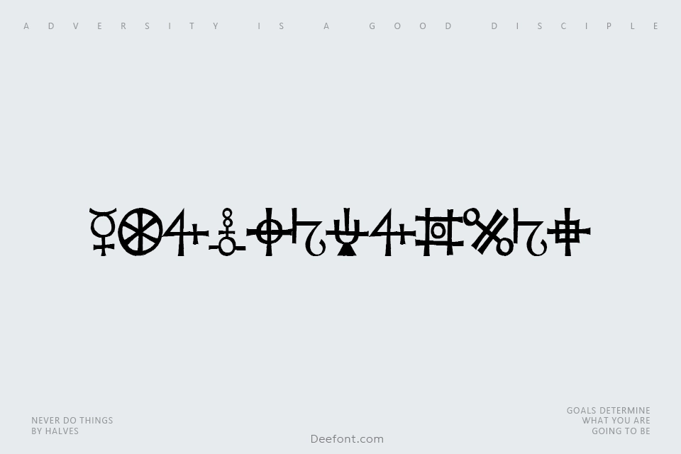 Agathodaimon is a distinctive decorative display font featuring medieval alchemical and esoteric symbols. Each character represents authentic historical chemical symbols from ancient times through the middle ages, based on the calligraphy and work of Rudolf Koch. The font contains 110 meticulously crafted characters with bold, simple designs that appear as woodcuts. Ideal for artistic designs, mystical projects, envelope decoration, letterhead, borders, logo design, and professional desktop publishing. The symbols print beautifully from 8 to 200 points and are particularly effective in larger sizes.