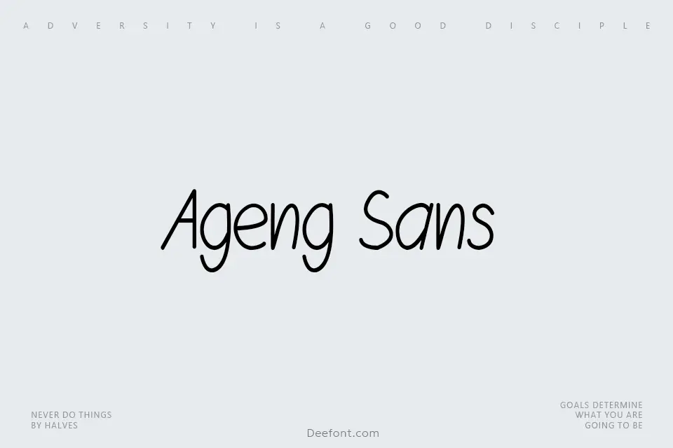 Ageng Sans is a light, casual handwritten sans font with clean monoline strokes and rounded corners that feel warm and approachable. Its relaxed letterforms and natural spacing make it ideal for logos, posters, packaging, quotes, diaries and social media graphics where a friendly, personal touch is essential.