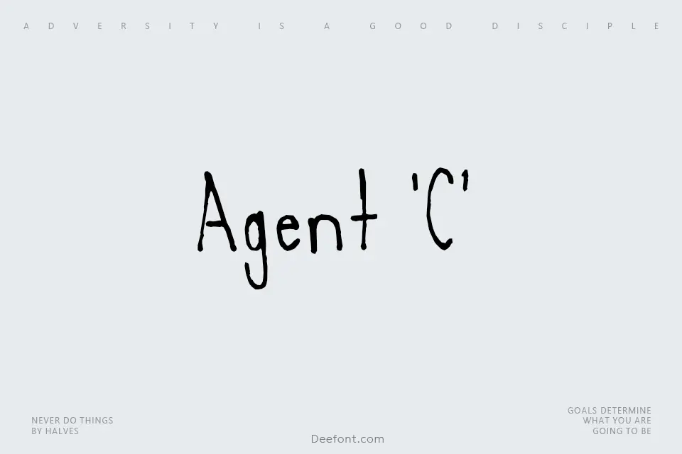 Agent ‘C’ Font is a charming handwritten script typeface crafted by Carl Leisegang, modeled on his own handwriting. With fluid letterforms and natural, slightly irregular strokes, it captures an authentic pen-on-paper feel. Ideal for invitations, greeting cards, personal branding, posters, and creative designs seeking a warm, human touch.