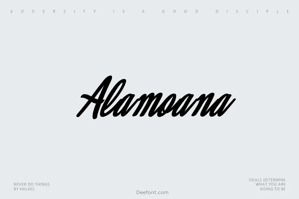 Alamoana Font is a bold retro script display typeface inspired by vintage bar signage, tattoos and surf culture. Its condensed letterforms, sweeping curves and textured strokes create a strong old-school vibe perfect for logos, posters, packaging, apparel branding and dramatic headline typography.