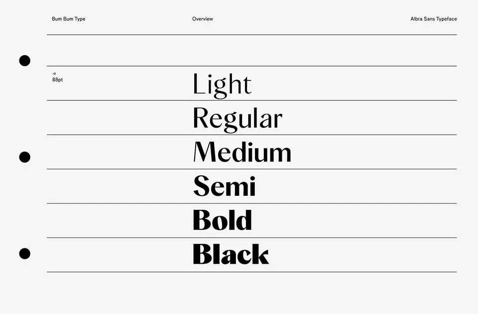 Albra Sans is suitable for branding, editorial design, packaging, and more.