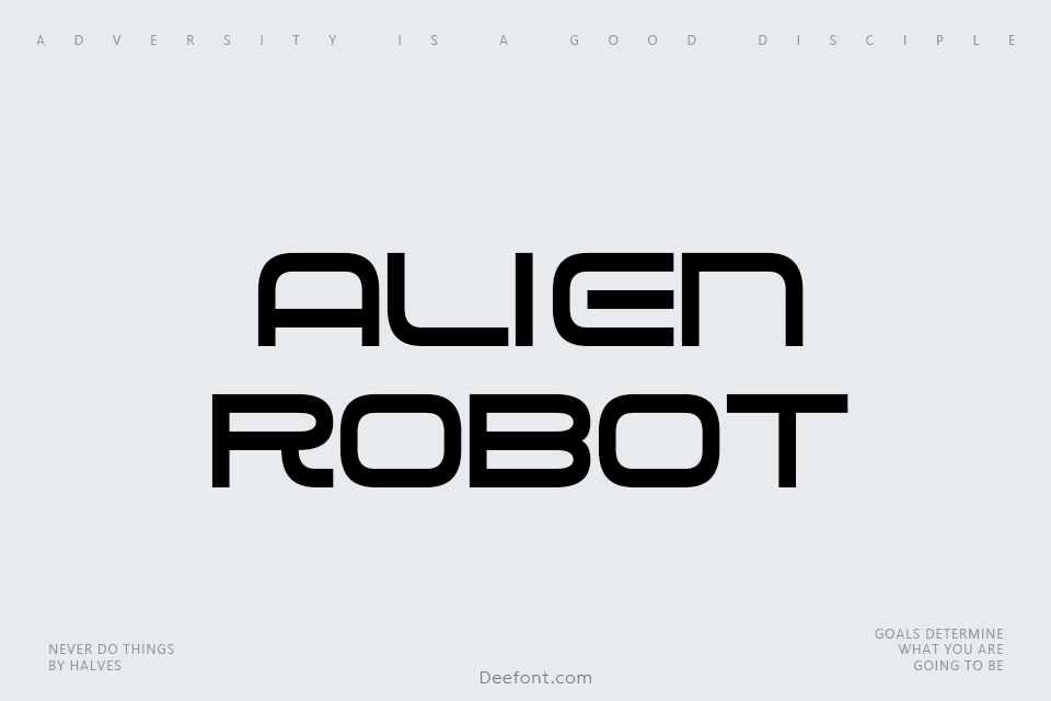 Alien Robot is a futuristic and geometric display font featuring clean lines and angular shapes, designed by Darrell Flood. With its bold, sleek structure and distinctive robotic character design, this typeface is perfect for sci-fi movie posters, technology branding, video game interfaces, and futuristic digital projects. The font’s unique cutouts and sharp edges create a powerful, modern aesthetic ideal for headlines and logos that demand a tech-savvy or space-age appearance. Supporting 113 characters with both regular and italic variations, Alien Robot brings a cutting-edge, otherworldly quality to any creative endeavor.