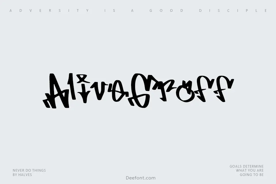 AliveGraff is a dynamic graffiti-style typeface inspired by urban tag culture and street art aesthetics. Designed with bold, angular letterforms and an edgy character, this display font captures the raw energy and creative spirit of graffiti art. Perfect for bold headline designs, poster graphics, music branding, and eye-catching typography projects that demand attention and personality.