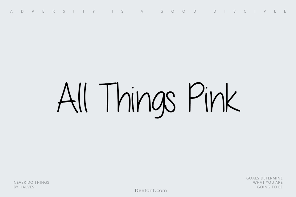 All Things Pink is a playful and casual handwritten script font featuring smooth, rounded edges and a friendly appearance. With slightly irregular characters that add personal charm, it boasts bold uppercase letters and flowing lowercase characters with a larger x-height. The font’s informal and approachable style makes it ideal for greeting cards, children’s books, playful branding, and creative social media graphics. Perfect for projects requiring a cute, feminine touch with natural handwritten aesthetics.