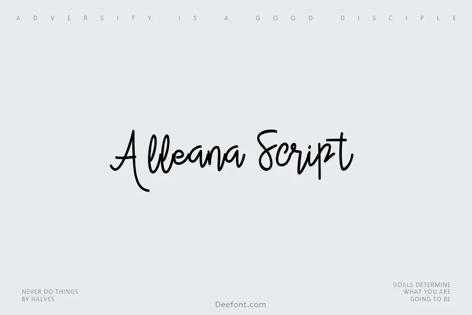 Alleana Script is a captivating handwritten font by ijem that blends modern calligraphy with a playful, wavy rhythm. Its smooth, varying strokes create a casual yet elegant aesthetic, making it perfect for wedding invitations, signature logos, and stylish branding. This versatile script adds a unique, personal touch to posters, labels, and creative headlines.