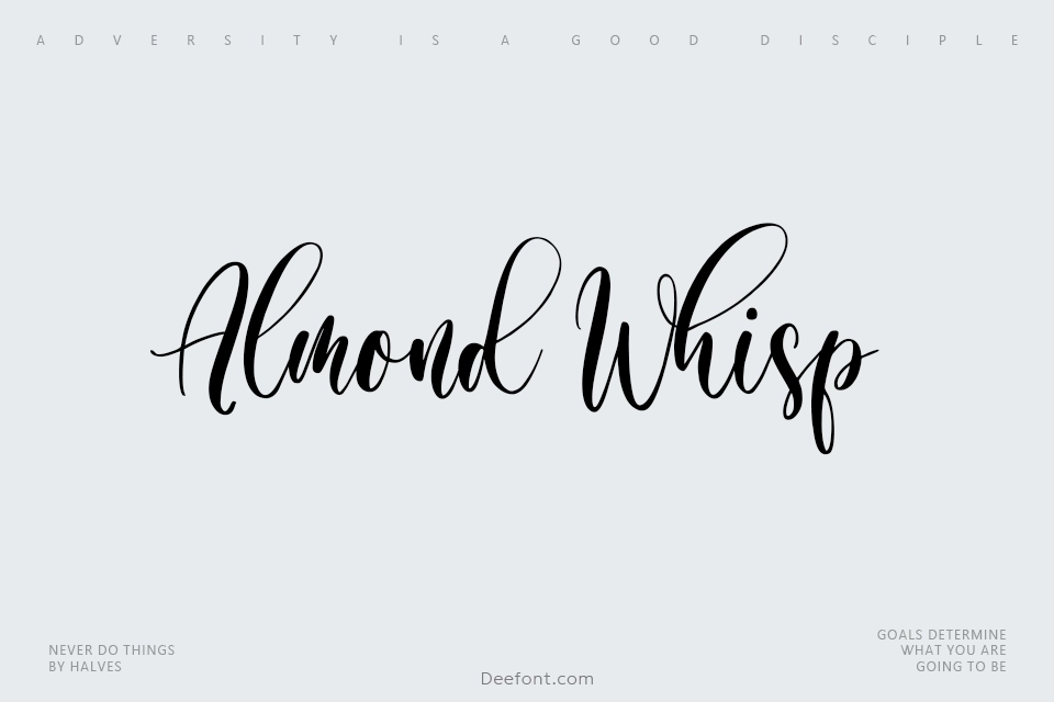 Almond Whisp is an elegant modern calligraphy script font created by Sronstudio, perfect for wedding invitations, branding, stationery, social media posts, and creative projects. This beautiful typeface features smooth, flowing letterforms with swash alternates and ligatures, offering 290 glyphs with multilingual support. With its contemporary yet refined aesthetic, Almond Whisp combines professional appeal with artistic charm, making it an excellent choice for anyone seeking sophisticated script typography for personal creative endeavors.