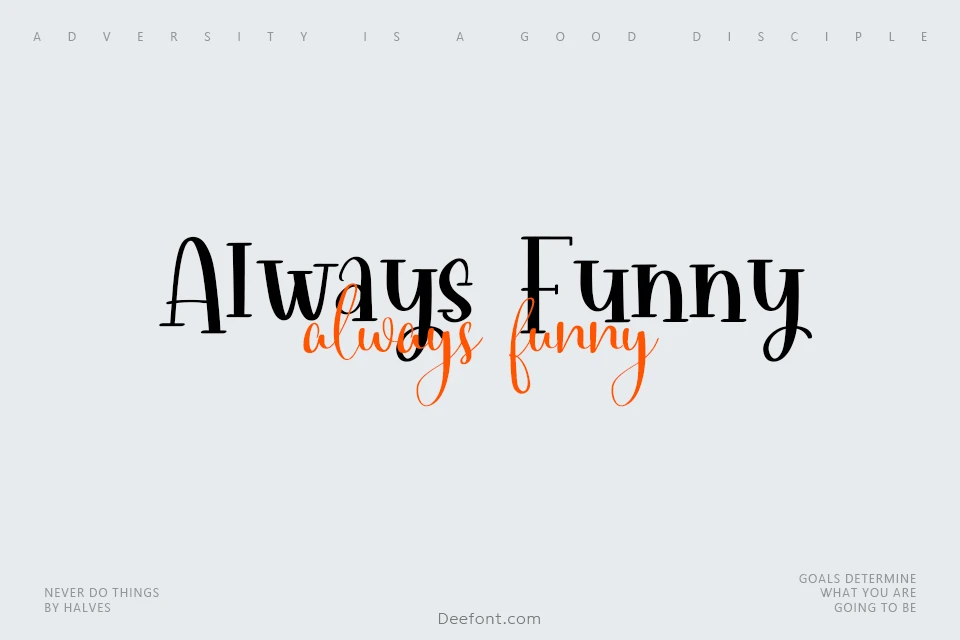Always Funny Font Duo is a playful font duo that combines beautiful calligraphy with a fun serif style. The contrasting yet harmonious pairing delivers a unique and stylish look, making it perfect for a wide range of creative applications such as branding, invitations, apparel, packaging, posters, and more. With full multilingual support, ligatures, and swooshes, Always Funny Font Duo enhances your designs with both elegance and whimsy, suitable for industries from publishing and fashion to weddings and children’s products.