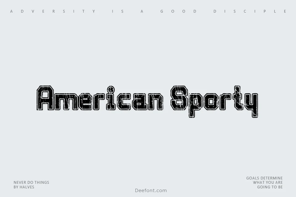 American Sporty is a bold and dynamic display typeface designed for athletic and sports-themed projects. With its chunky letterforms and energetic aesthetic, this font captures the spirit of vintage sports branding and collegiate athletics. Perfect for posters, logos, team uniforms, and any design requiring strong, impactful typography. The typeface features a contemporary sporty character while maintaining readability across various applications. Ideal for creating eye-catching designs that demand attention and convey power and movement in your creative work.