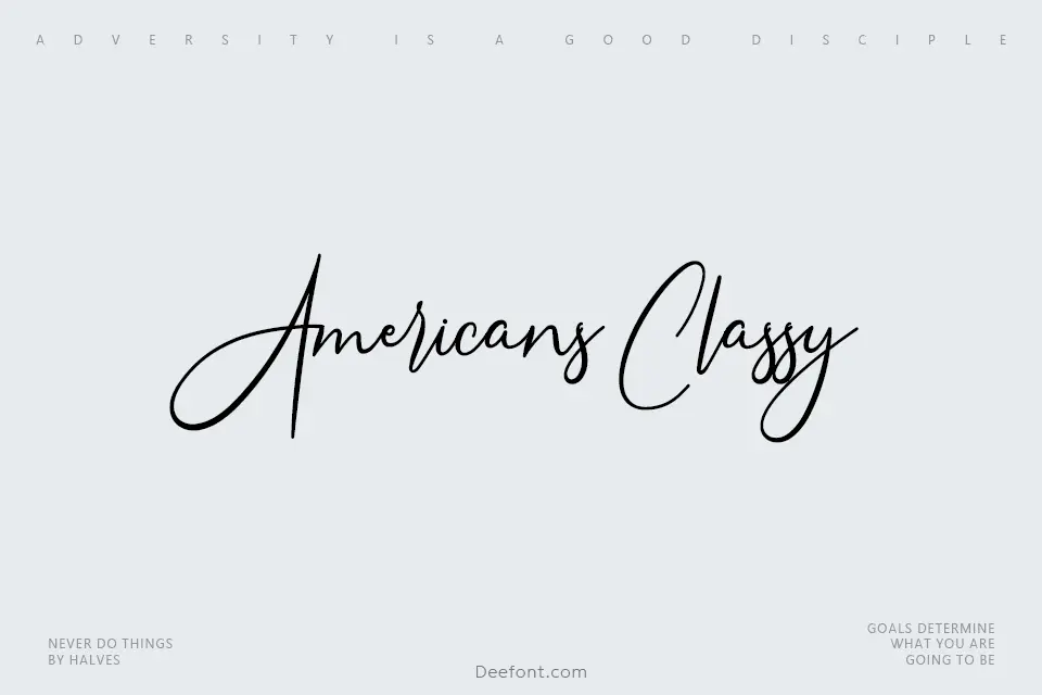 Americans Classy is an exquisite handwritten script typeface featuring flowing strokes and elegant letterforms inspired by classical calligraphy. With its refined, sophisticated character and imperfect yet charming hand-drawn quality, this font brings an aristocratic touch to upscale designs. The graceful curves and premium aesthetics make it ideal for wedding invitations, luxury branding, elegant posters, formal greeting cards, and sophisticated typography projects requiring personal elegance and visual distinction.