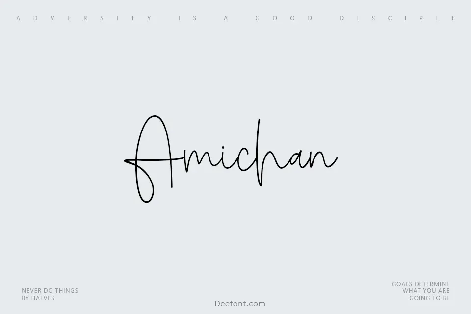 Amichan Font is a graceful monoline script designed with a stylish signature flair. Featuring fluid, continuous strokes and a casual yet elegant vibe, this typeface is perfect for wedding invitations, photography watermarks, and luxury branding. Its natural handwritten aesthetic adds a sophisticated, personal touch to modern logos, social media graphics, and packaging designs.