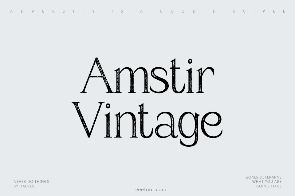 Amstir Vintage is a refined serif typeface that embodies timeless elegance and classic charm. Designed with smooth curves and balanced proportions, it evokes a vintage aesthetic while maintaining a modern versatility. Perfect for branding, editorial design, packaging, and invitations, this font adds sophistication to any project. Its clean lines and subtle details make it ideal for conveying professionalism and style. Whether used for headlines or body text, Amstir Vintage delivers a harmonious blend of tradition and contemporary appeal. This typeface is a must-have for designers seeking to create visually stunning work with a touch of vintage inspiration.