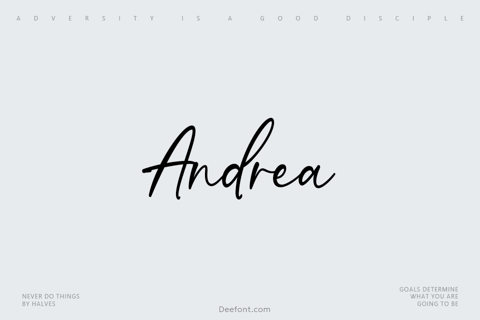 Andrea is an elegant handwritten script font that combines modern sophistication with playful charm. Created with meticulous attention to detail, this versatile typeface features intricate curves and clean lettering perfect for branding, logos, invitations, and social media graphics. Its fresh and contemporary style makes it ideal for both design professionals and creative projects, offering endless possibilities with its numerous ligatures and alternate characters for truly personalized typography.