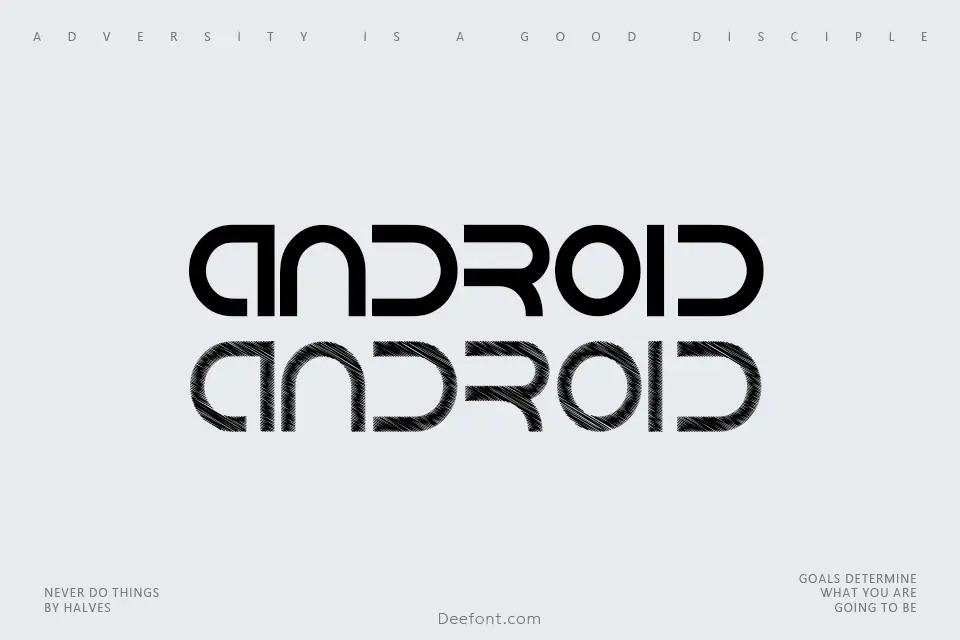 Android Font is a futuristic and geometric typeface characterized by bold strokes and tight character spacing, designed by Isaac K. This display font features a sleek, modern aesthetic with consistent uppercase and lowercase letter heights. Its contemporary design makes it ideal for technology branding, sci-fi posters, video game titles, and digital interfaces. The font’s compact and efficient styling contributes to its space-age appearance, making it a perfect choice for projects requiring an innovative and cutting-edge touch.