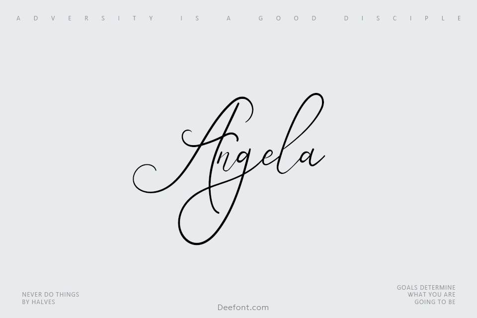 Angela is a beautiful handwritten script font designed by Haksen Studio. This elegant cursive typeface features smooth, flowing lines that capture the essence of natural handwriting. Perfect for greeting cards, branding materials, wedding invitations, business cards, and creative projects that require a personal touch. With 218 glyphs and support for multiple languages, Angela brings sophistication and warmth to any typographic design. Suitable for posters, quotes, and branding applications.