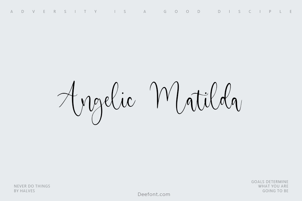 Angelic Matilda is a beautiful modern calligraphy font designed by Letterative Studio. This elegant script typeface features delicate and flowing handwritten characteristics, making it perfect for wedding invitations, branding projects, product packaging, magazine designs, and social media content. With its joyful and romantic aesthetic, the font adds a sophisticated touch to any creative design. Angelic Matilda supports multiple languages and includes both TTF and OTF formats for comprehensive design flexibility.