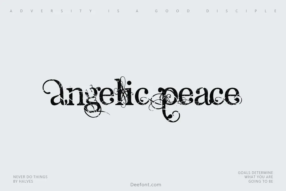 This is a revised version of Angelic War and is based off many characters in Angelic Serif. I redid the font so that the letters were a bit more updated and unique as well as to be able to reduce the amount of noise when the font was printed on products.