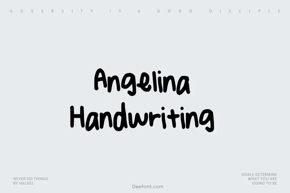 Angelina Handwriting is a charming and authentic script font designed by Angelina Chau. Featuring a natural, uneven baseline and playful curves, it captures the essence of real penmanship. This font is ideal for personal crafting, greeting cards, and digital diaries, adding a sweet, human touch to any layout. Its casual flow ensures a friendly and approachable aesthetic.