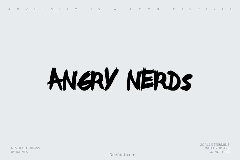 Angry Nerds is a vibrant, hand-drawn display typeface that combines playful character with a distinctive contemporary edge. Featuring chunky, irregular letterforms with pronounced strokes and comic-inspired aesthetics, this font excels in creating bold, attention-grabbing typography. Its exuberant personality makes it ideal for poster design, logo creation, Halloween-themed projects, greeting cards, and social media graphics. The font’s energetic style conveys humor and creativity, making it particularly well-suited for entertainment, youth-oriented branding, and unconventional design applications. With 69 glyphs supporting basic Latin characters, Angry Nerds delivers maximum visual impact at large display sizes while maintaining legibility across diverse design contexts.