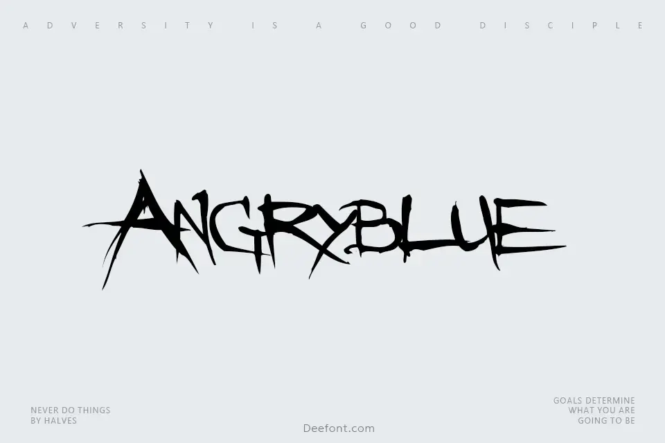 Angryblue is a distinctive graffiti-inspired display font characterized by sharp, jagged angular letterforms and intense, rebellious styling. With high contrast and tight character spacing, this typeface evokes a sense of controlled chaos ideal for creating impactful visuals. Perfect for horror movie titles, Halloween posters, aggressive branding, and artistic projects requiring bold, eye-catching typography that commands attention.