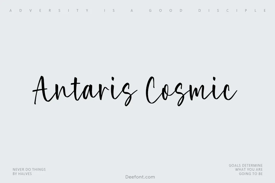 Antaris Cosmic is a captivating handwritten script font designed by Timur Type. With its elegant flow and modern charm, this typeface brings a warm, personal touch to any project. It is perfectly suited for creating stylish logos, wedding invitations, product packaging, and social media graphics. The smooth connections and natural strokes make it an excellent choice for designs requiring a sophisticated yet approachable aesthetic.