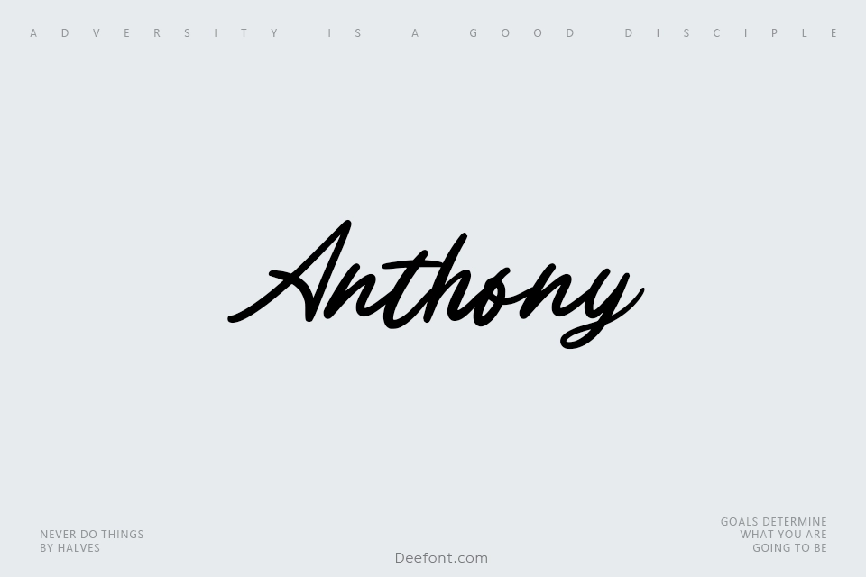 Anthony is an elegant handwritten script font featuring graceful, flowing pen strokes that create a natural and stylish appearance. This versatile typeface is perfect for branding projects, logo design, wedding invitations, social media posts, product packaging, and any creative project that requires a sophisticated handwriting aesthetic. With its signature-style character and smooth ligatures, Anthony brings an authentic personal touch to both digital and print designs.