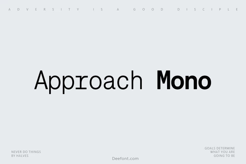 Approach Mono Font Family is a technical, monospaced sans-serif typeface with a utilitarian, low-contrast design. While slightly mechanical in appearance, it offers plenty of character and clarity. This fixed-width version of Approach features more prominent and visible punctuation, making it ideal for tables, programming code, or “in progress” texts. However, its versatility also makes it suitable for modern communication, including brochures, advertising, and brand identities, where a clean and aseptic voice is desired.Approach Mono Font Family brings a fresh yet familiar feel to any project, combining functionality with distinct personality.